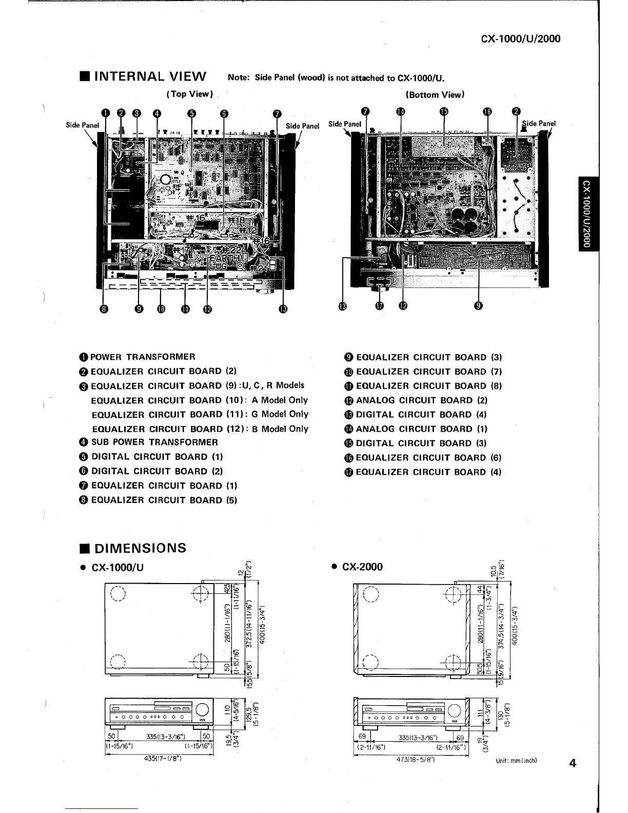 Yamaha CX-2000 - Internal Component Layouts; Power Transformer and Circuit Boards; Digital and Analog Circuitry; Physical Dimensions