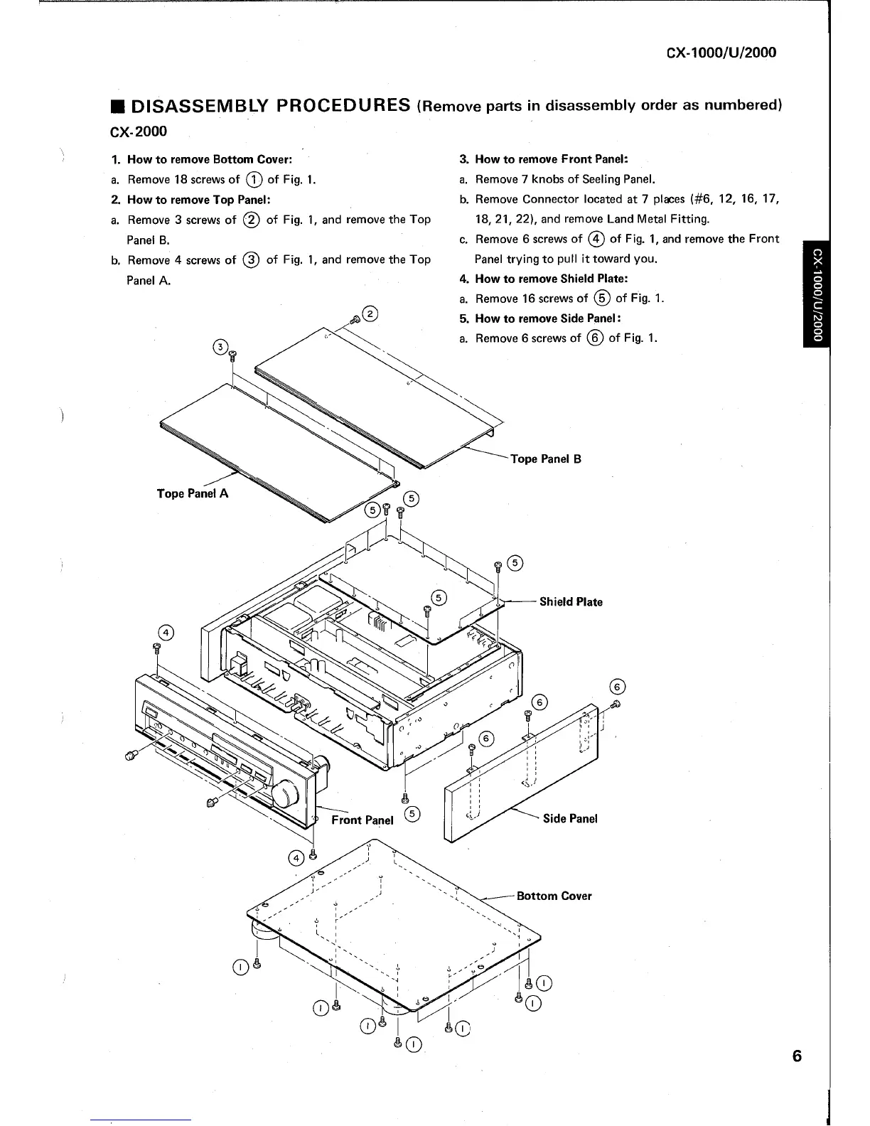 Yamaha CX-2000 - CX-2000 Disassembly Steps; CX-2000 Cover and Panel Removal; CX-2000 Shield and Side Panel Removal
