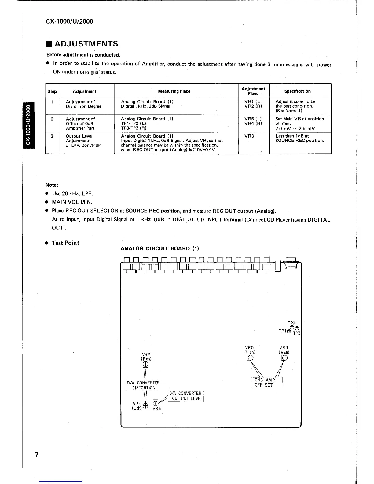 Yamaha CX-2000 - Adjustment Procedures and Specifications; Distortion Degree Adjustment; Amplifier Offset Adjustment; D;A Converter Output Level