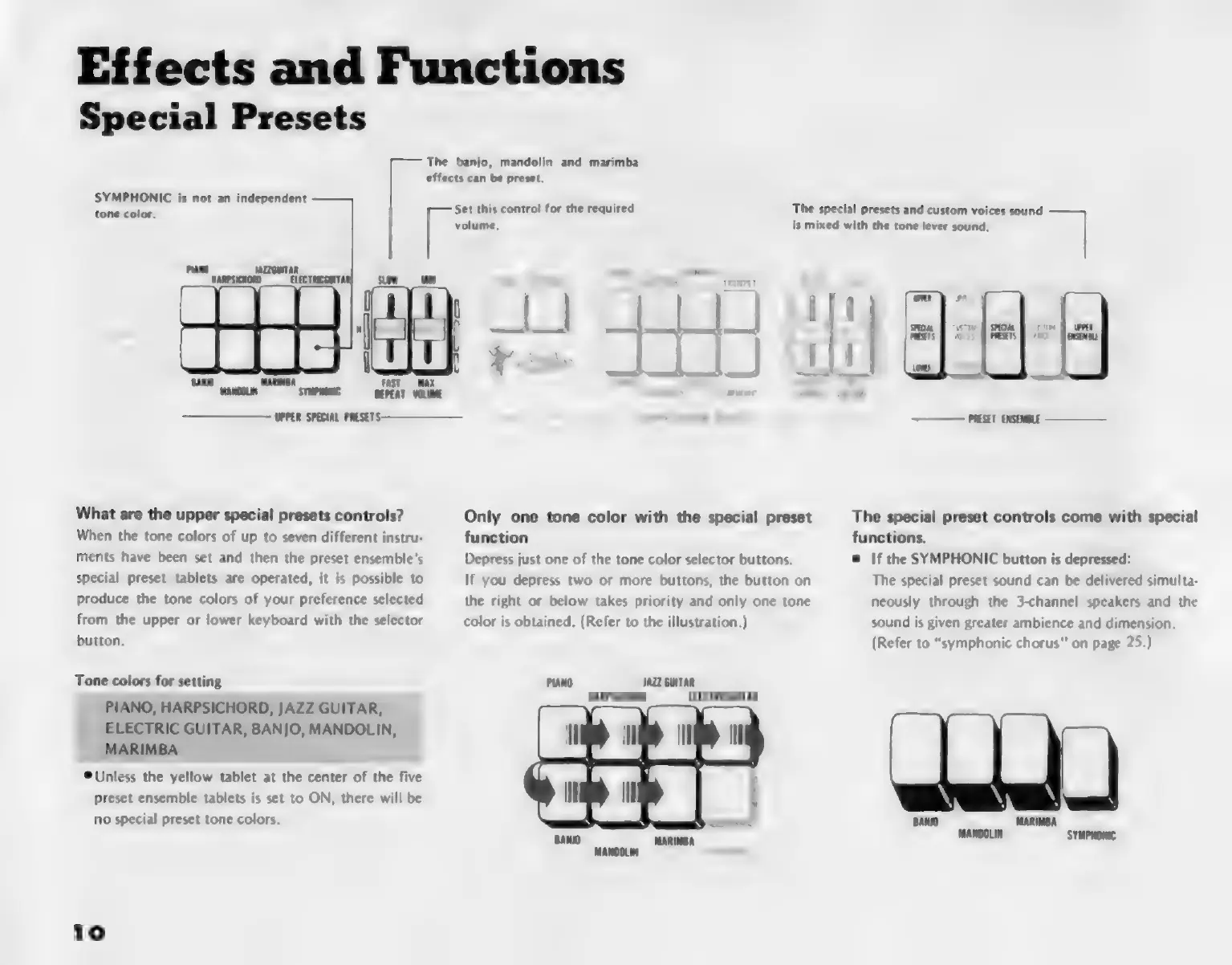Yamaha D-85 - Special Preset Tones; Upper Special Presets; Preset Ensemble Functionality; Symphonic Chorus Effect