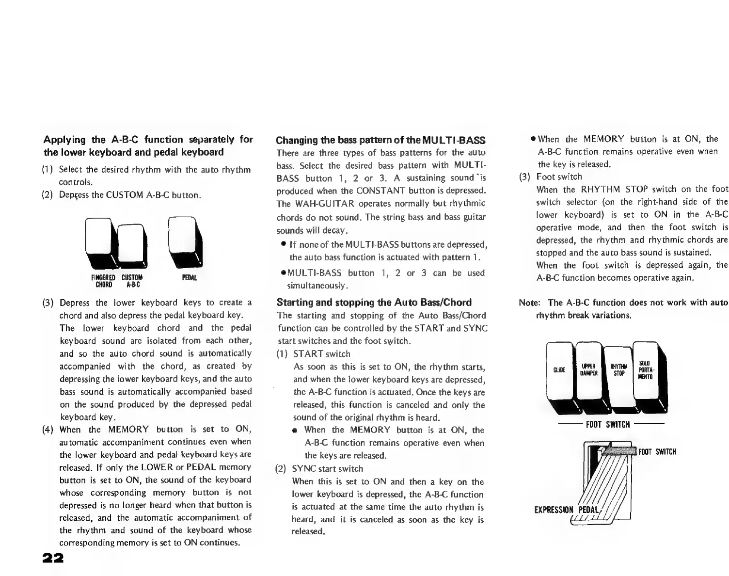 Yamaha D-85 - A-B-C Function and Bass Patterns; Separate A-B-C Functionality; Multi-Bass Patterns and Operation