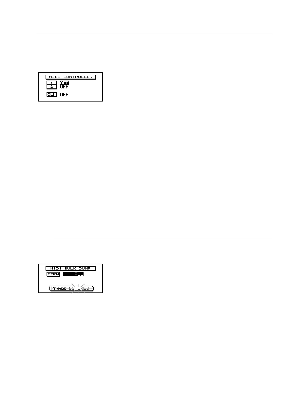 CLK (OFF/ON) Enable or disable the MIDI clock. When it is enabled, the clock of