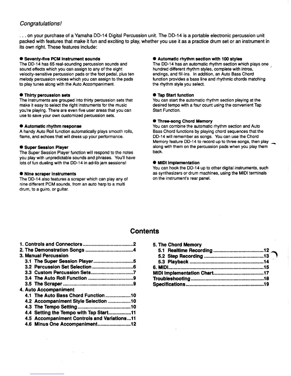 Yamaha DD-14 - Features; Contents