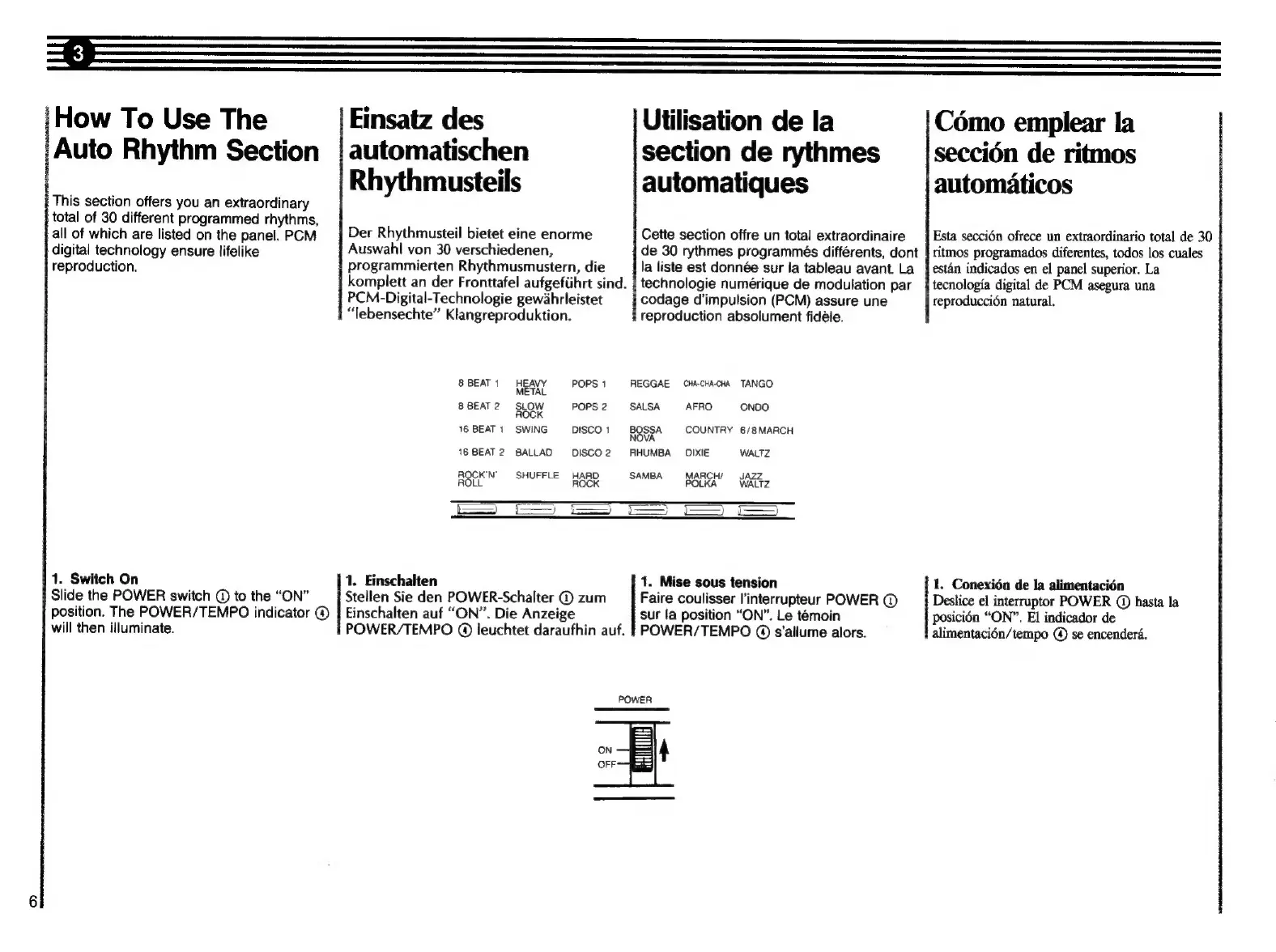 Yamaha DD-5 - Using the Auto Rhythm Section; Powering On the Rhythm