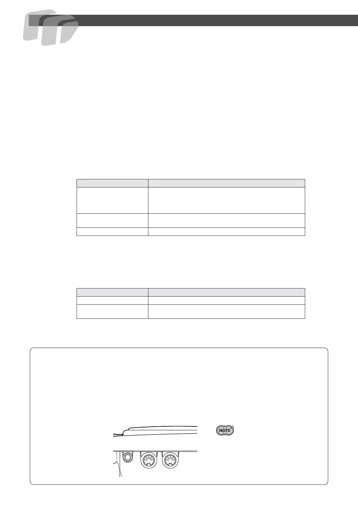 MIDI IN .................... Data transmitted from other MIDI instruments via MIDI, is received at