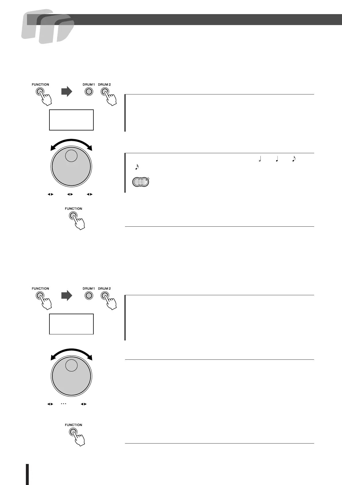 Press the [FUNCTION] button once, then press the [DRUM 1] or