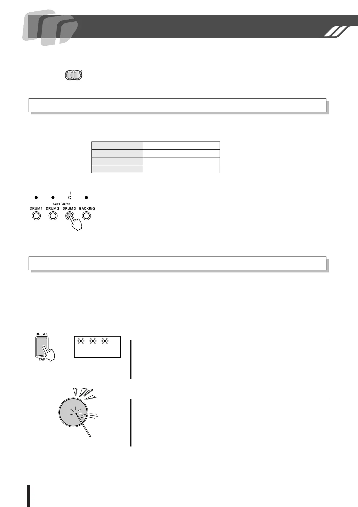Striking a pad while in the Break mode, the song’s accompaniment will be muted until the end of the