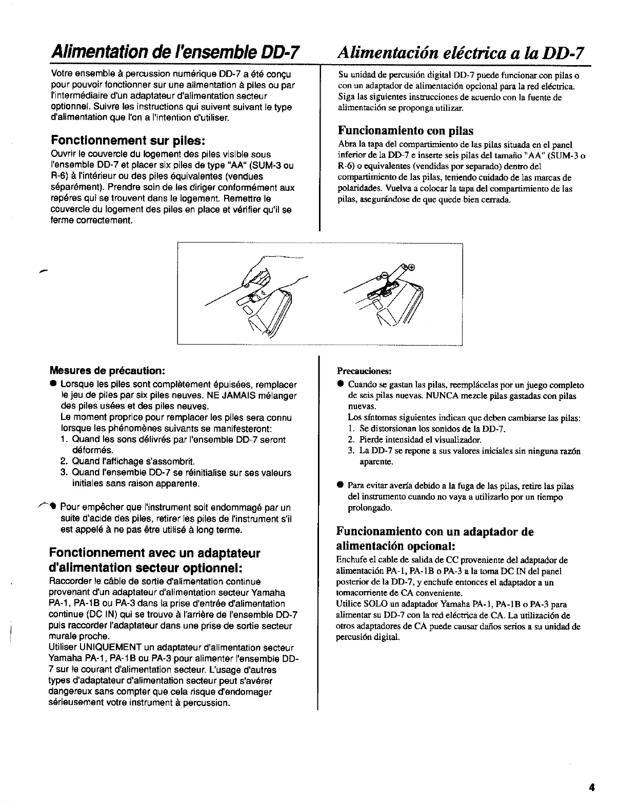 Yamaha DD-7 - Powering the Unit; Battery Operation; AC Adapter Operation