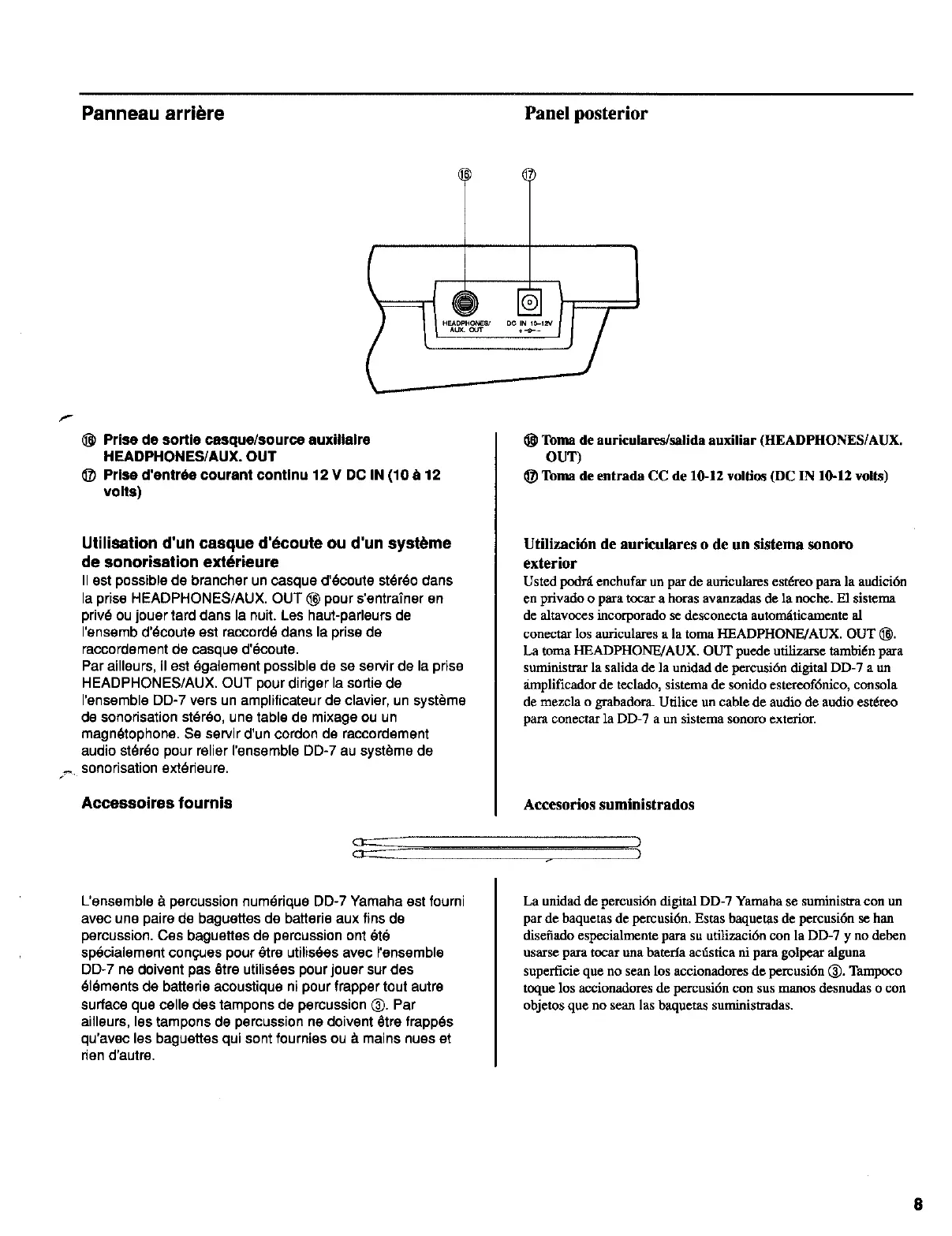 Yamaha DD-7 - Rear Panel Ports and Accessories