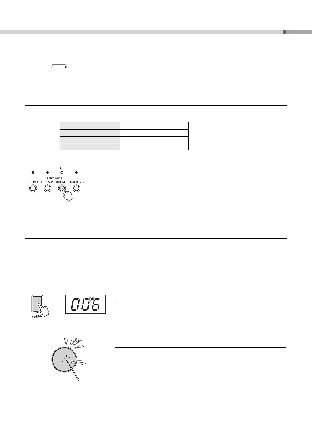 Striking a pad while in the Break mode, the song’s accompaniment will be muted until the end of the measure