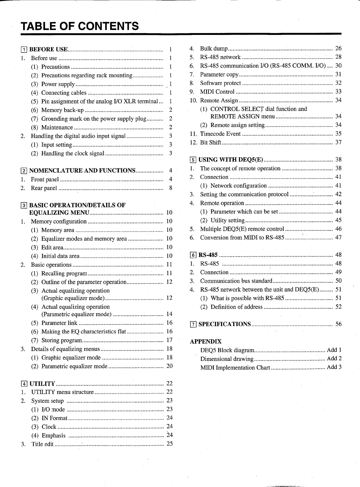 Yamaha DEQ5 - Table of Contents
