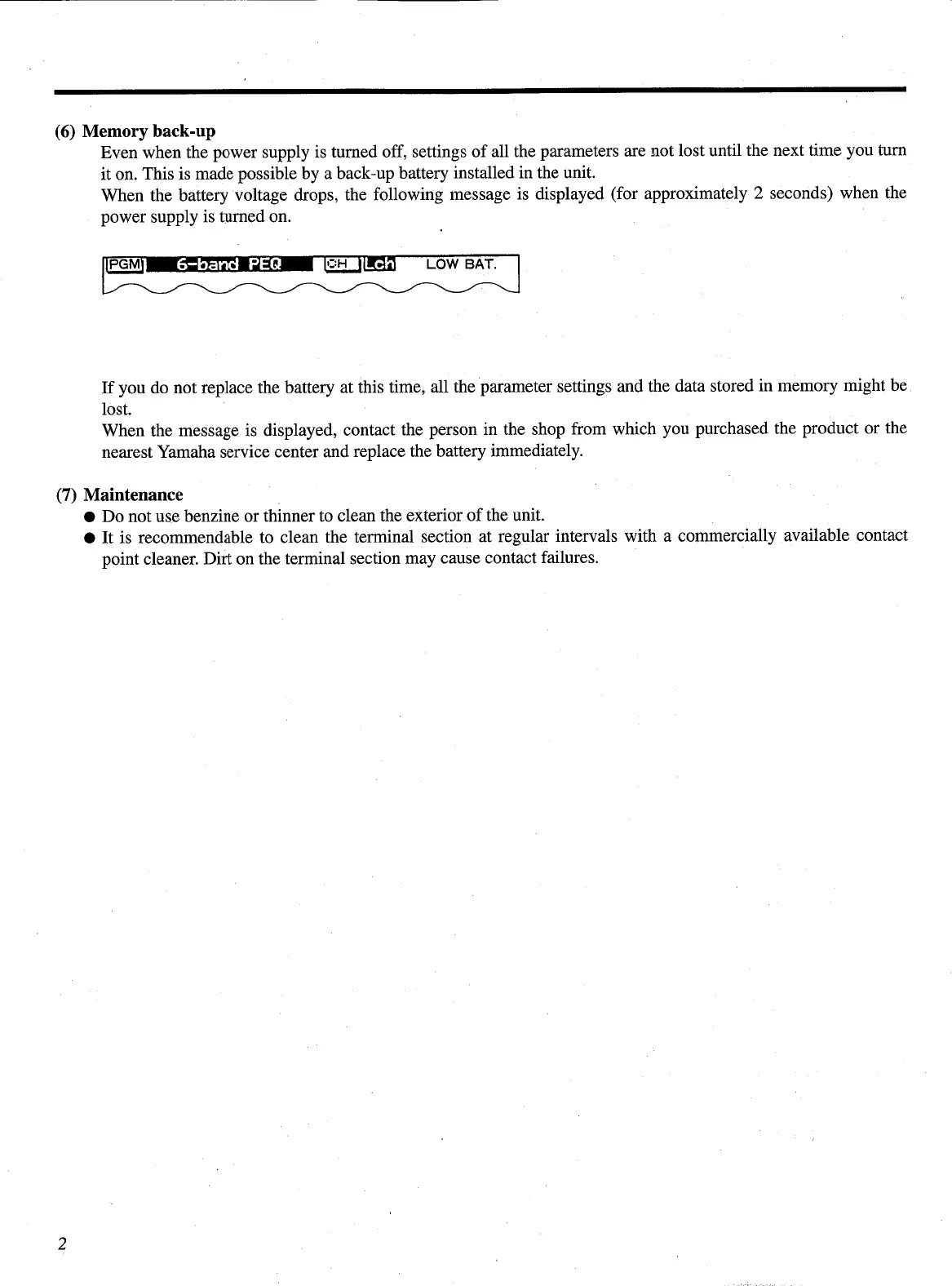 Yamaha DEQ5 - Memory Back-Up; Maintenance
