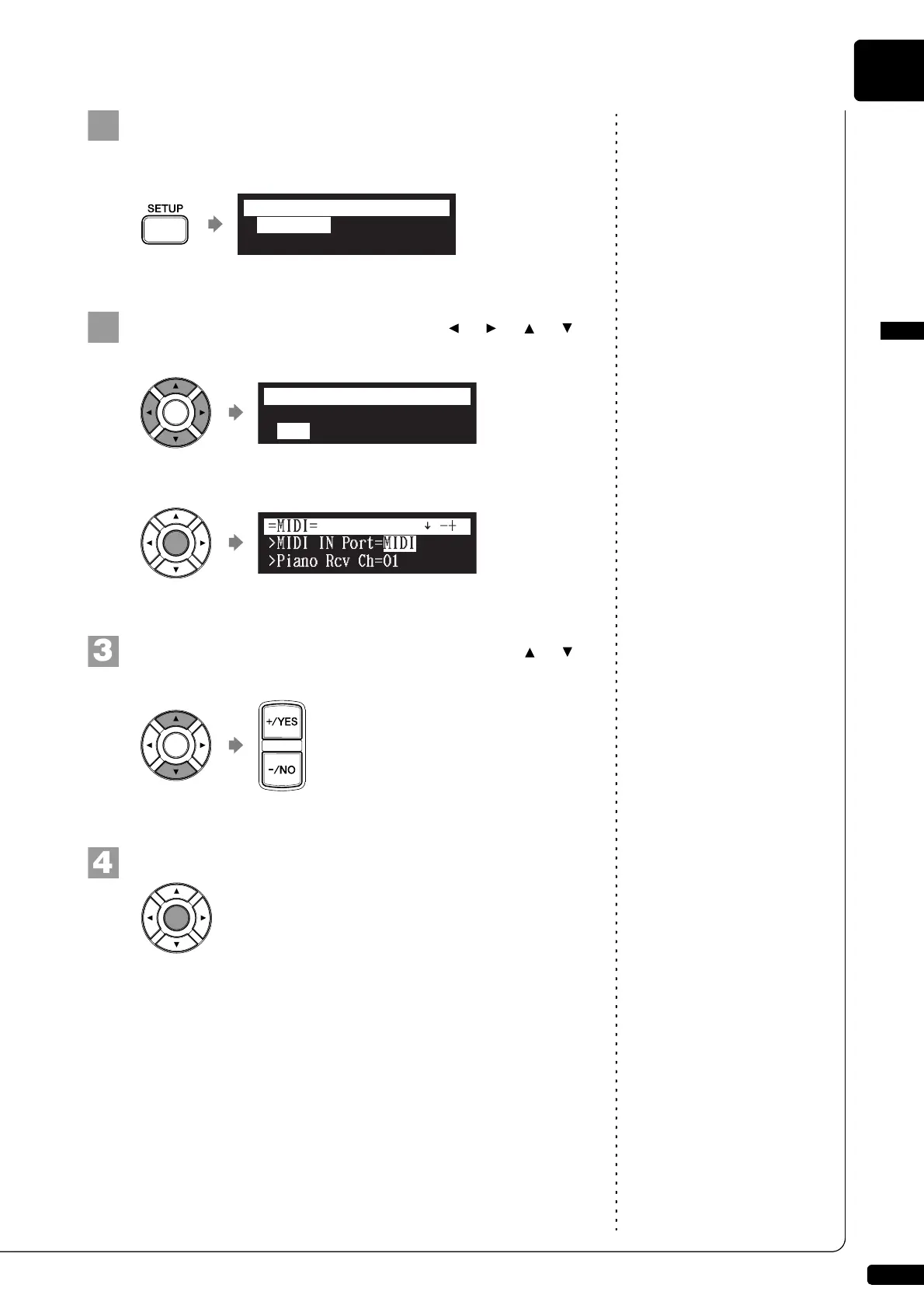 Select “MIDI” with the cursor buttons ([ ] [ ] [ ] [ ]),