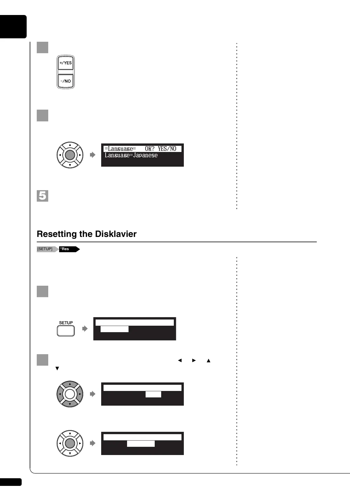 If you want to return your Disklavier to its initial factory settings, follow the