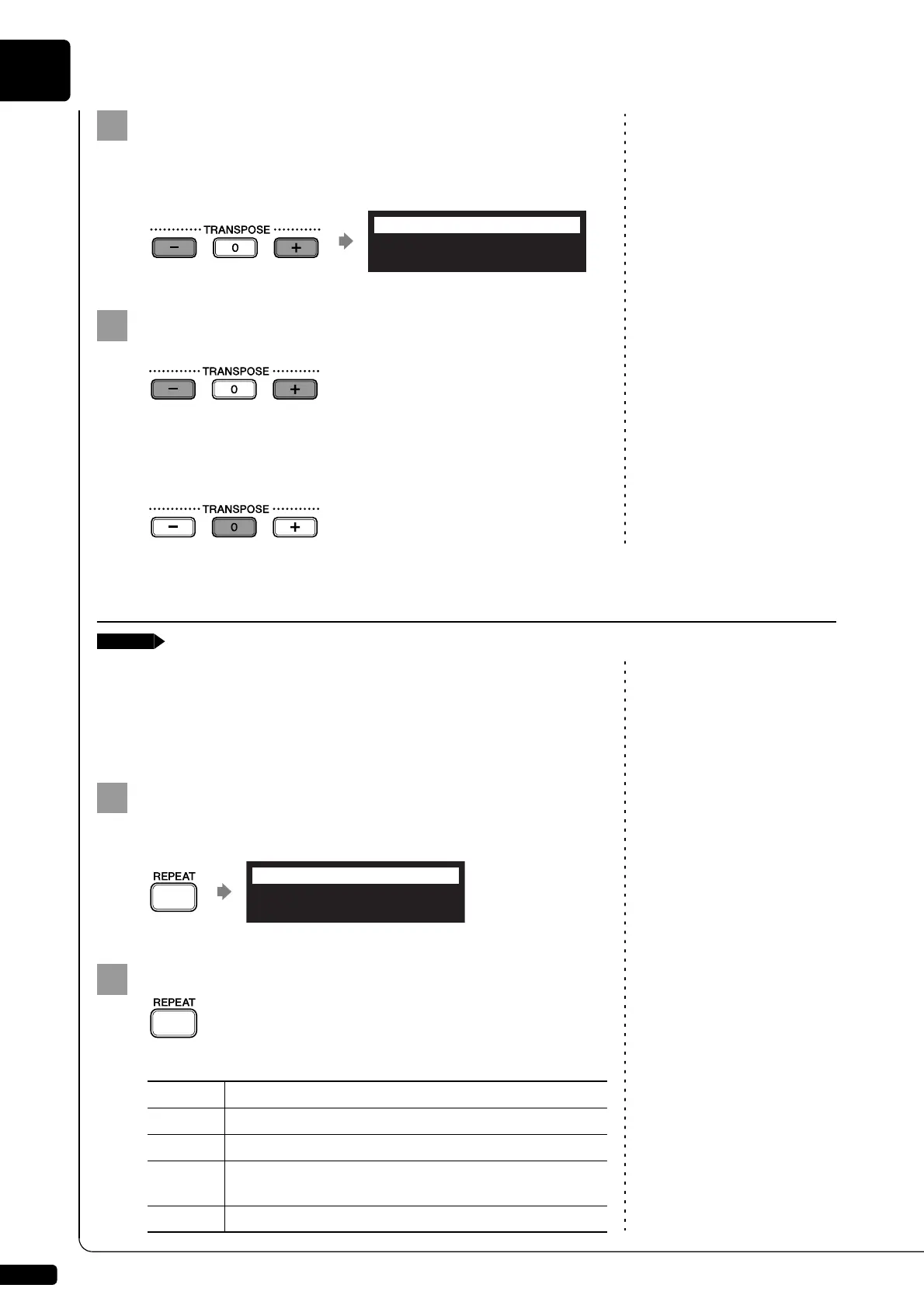 Press [TRANSPOSE –] or [TRANSPOSE +] to change the