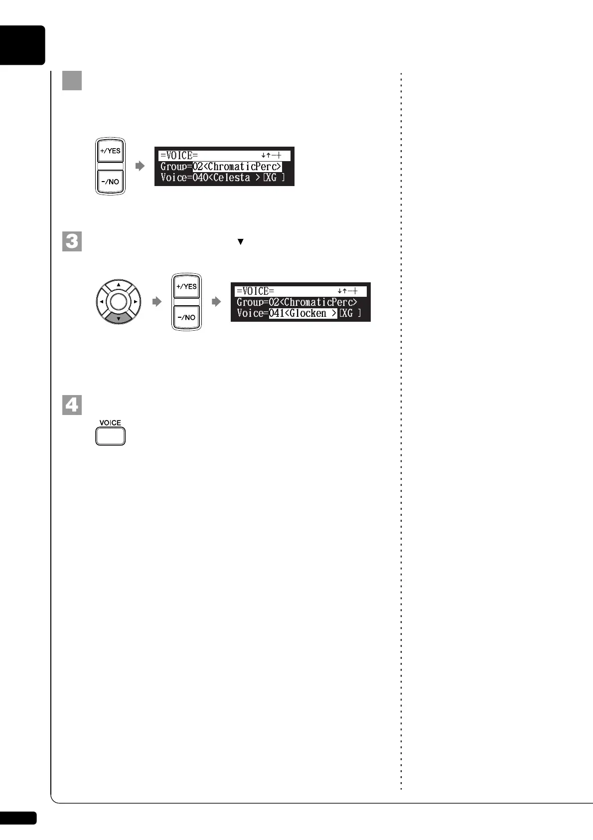 voice parameter (“Voice”), then press [+/YES] and [–/NO].