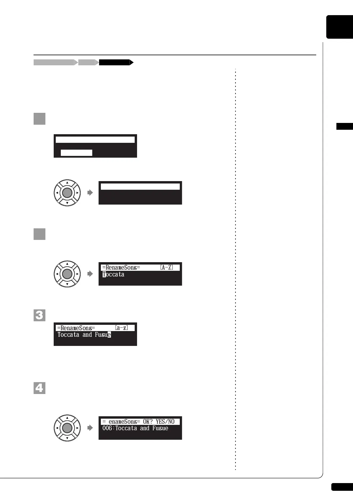 Select “RenameSong” in the song function menu, then