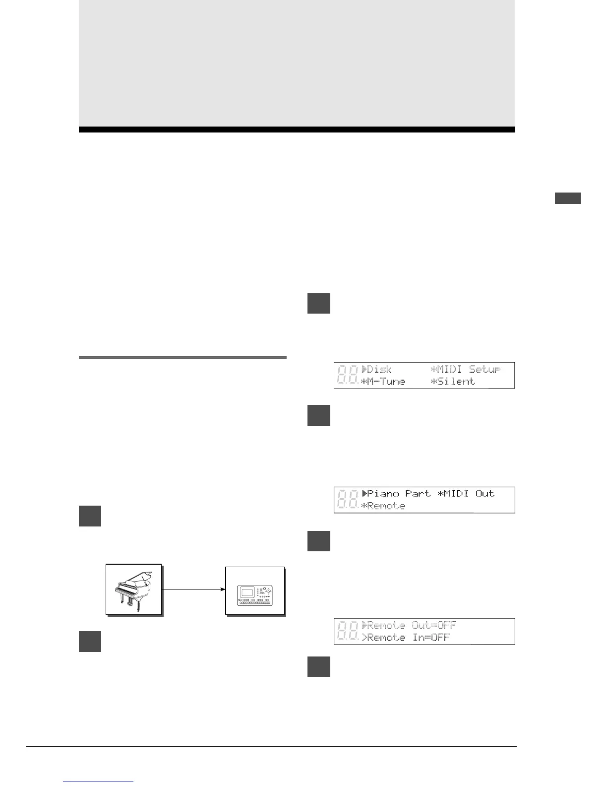 This chapter describes how the Disklavier can be used with other MIDI instruments. The Disklavier’s