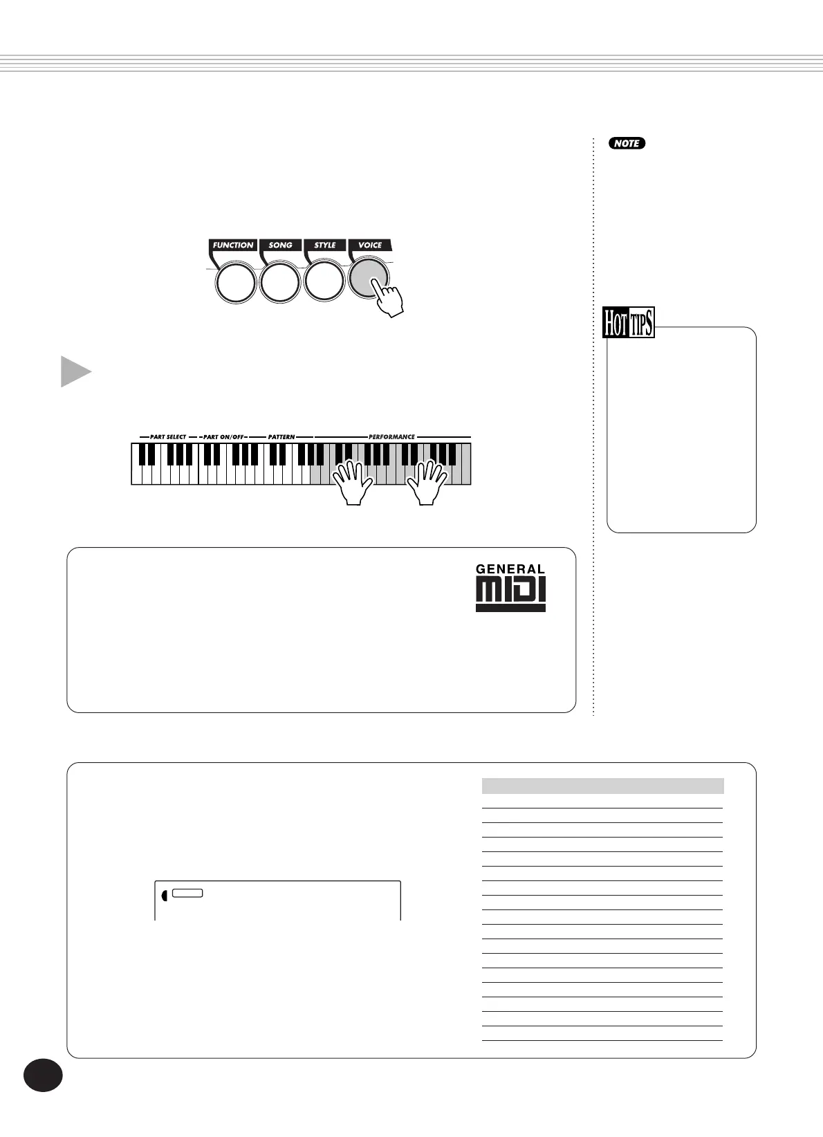 When a GM voice is selected, the General MIDI icon appears at the top left of the