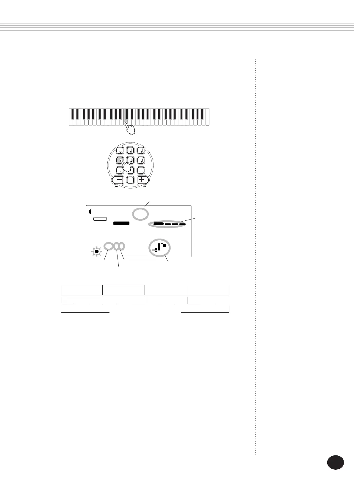 3) Select the note (time) value with the numeric keypad. (The