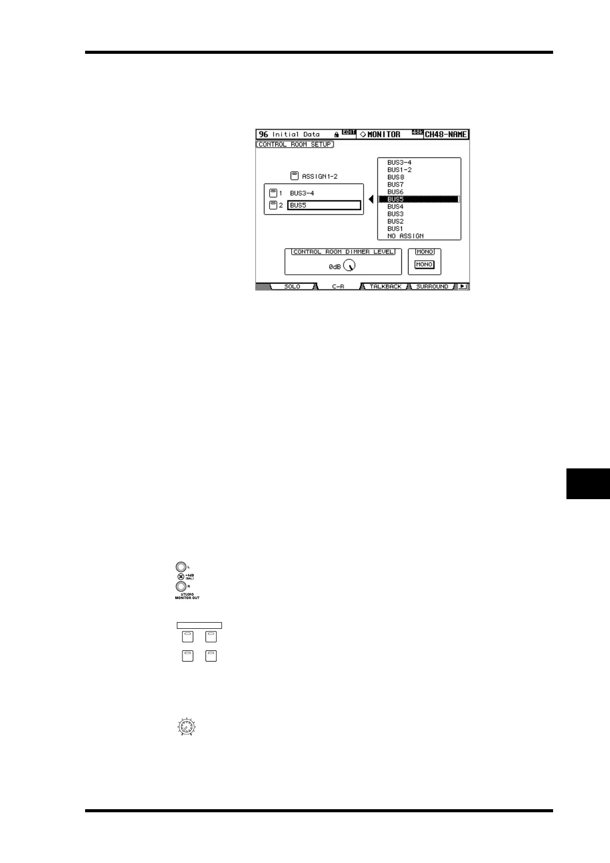 1 Use the MONITOR [DISPLAY] button to locate the Control Room Setup page.
