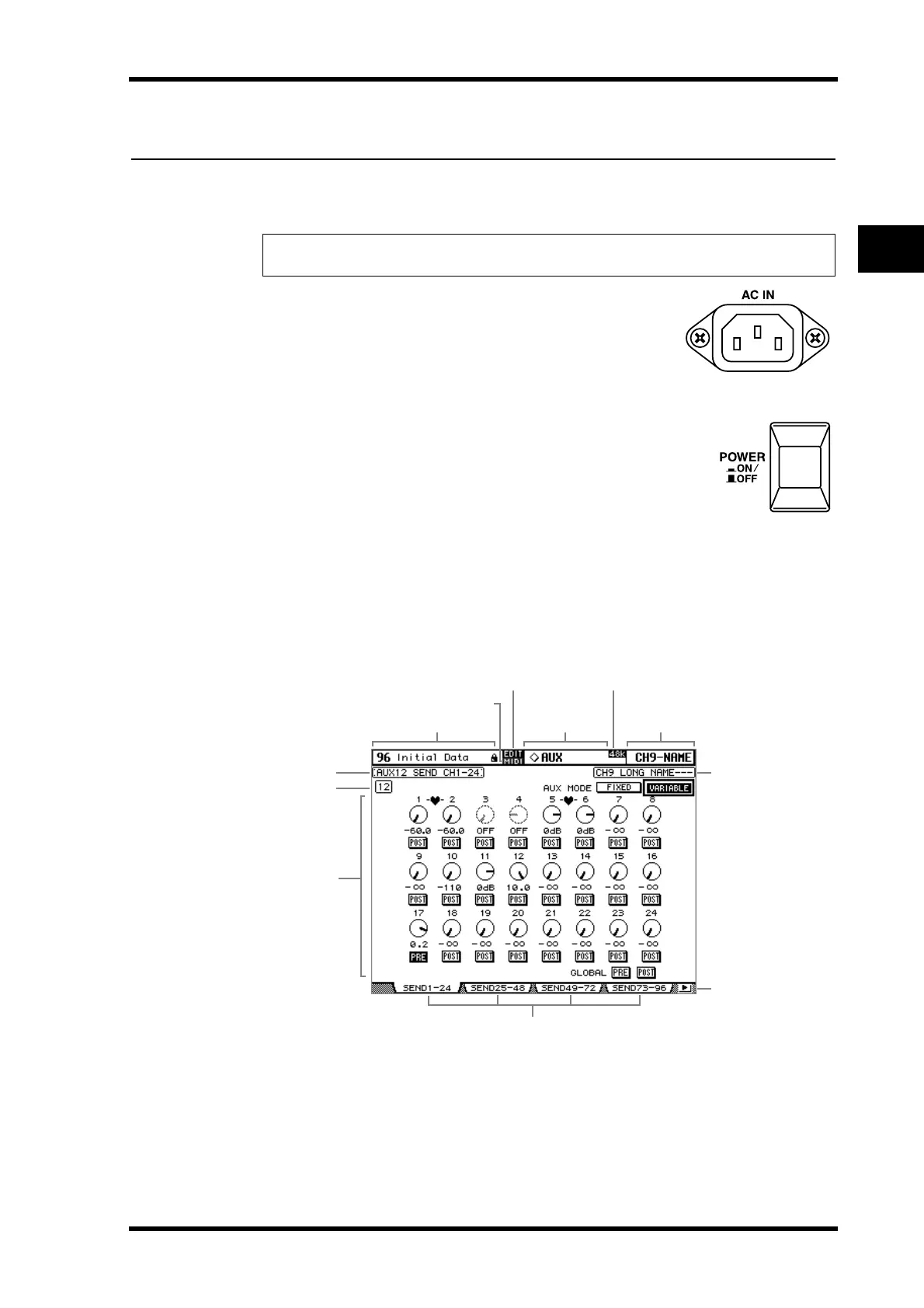 MIDI indicator: This indicator appears when the DM2000 is receiving MIDI data via the