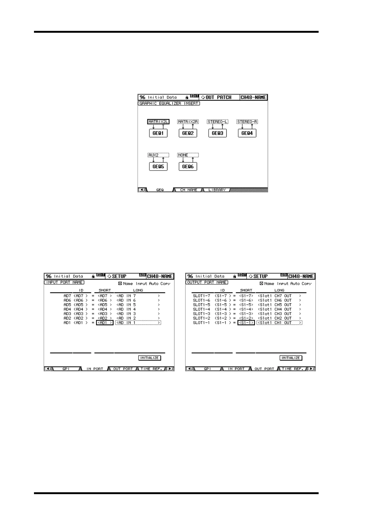 You can reset all port names back to their initial values by pressing the INITIALIZE button.