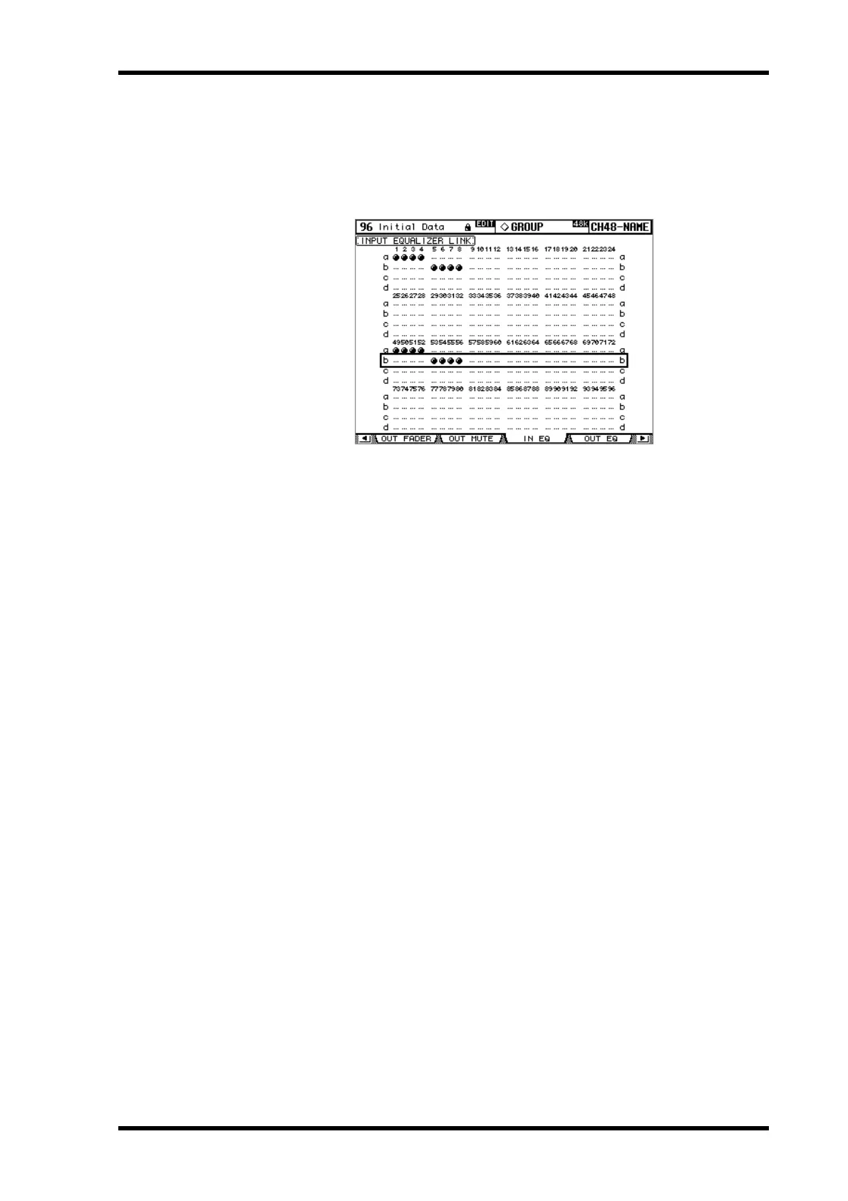 3 Use the Up/Down cursor buttons to select EQ groups a–d.