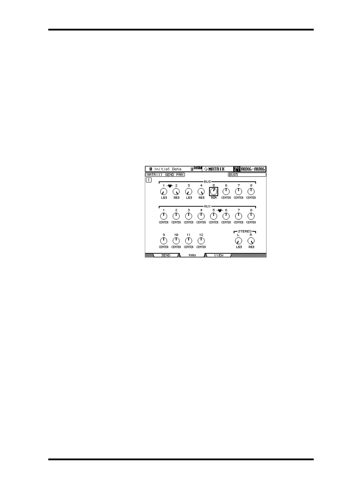 3 Use the cursor buttons to select Output Channel Matrix Send pan controls,