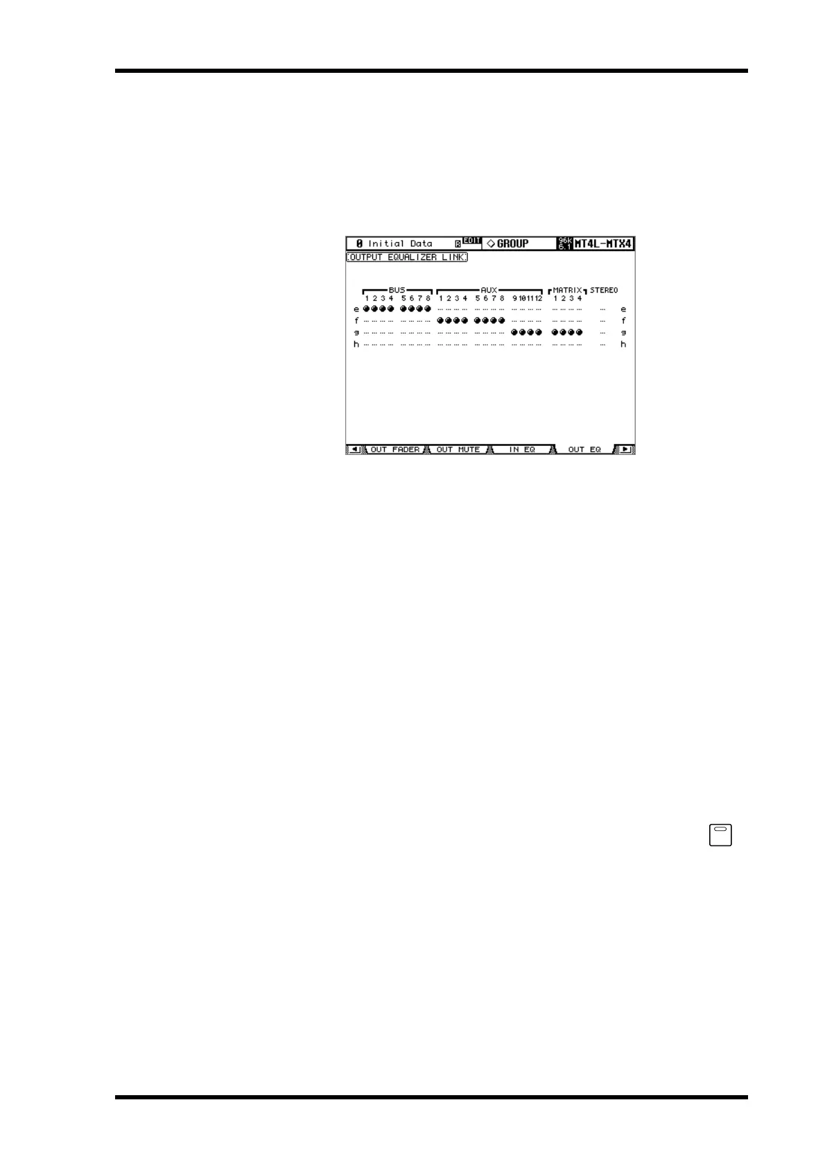 3 Use the Up/Down cursor buttons to select EQ groups e–h.