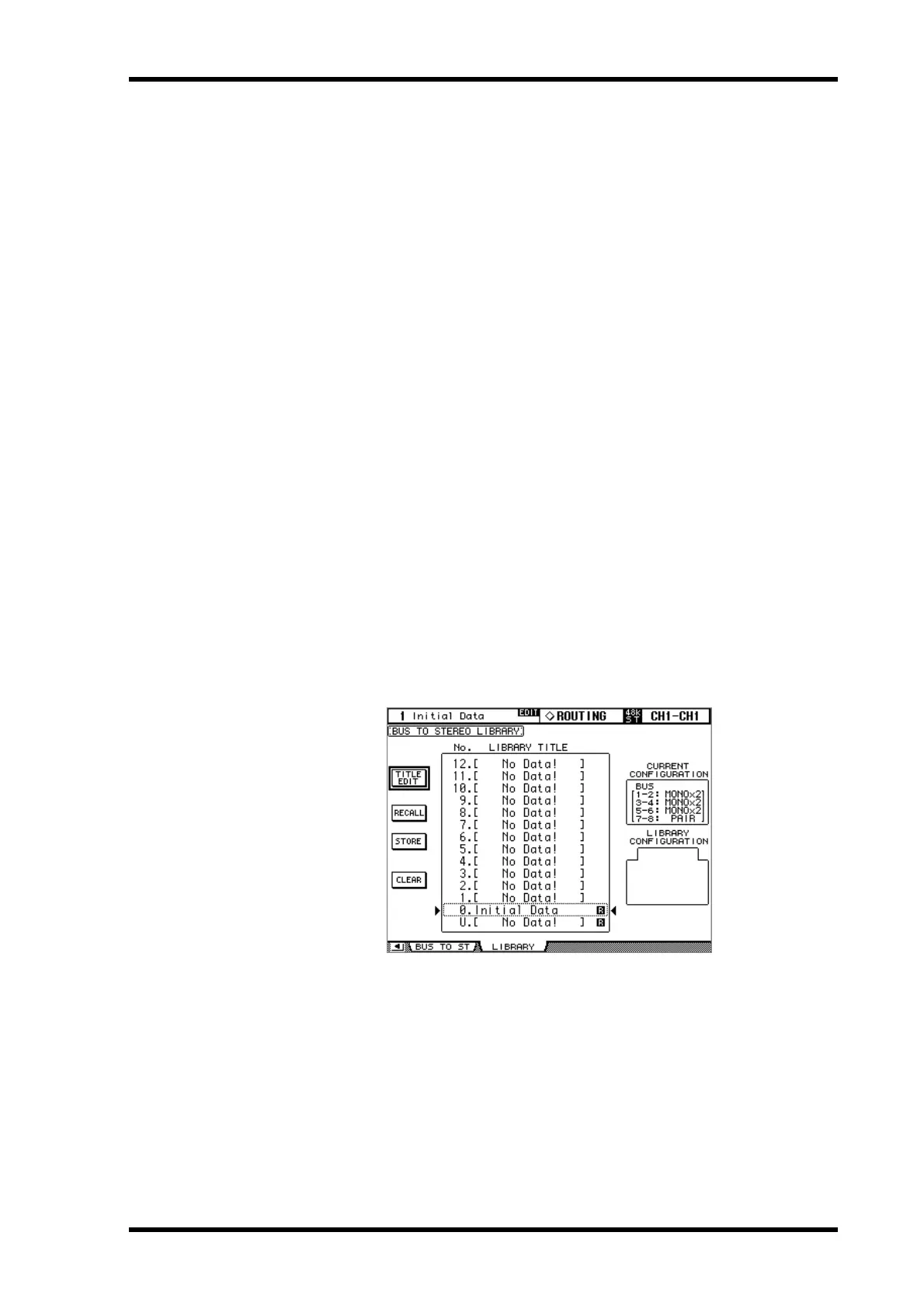 1 Use the ROUTING [DISPLAY] button to select the Bus to Stereo Library page.