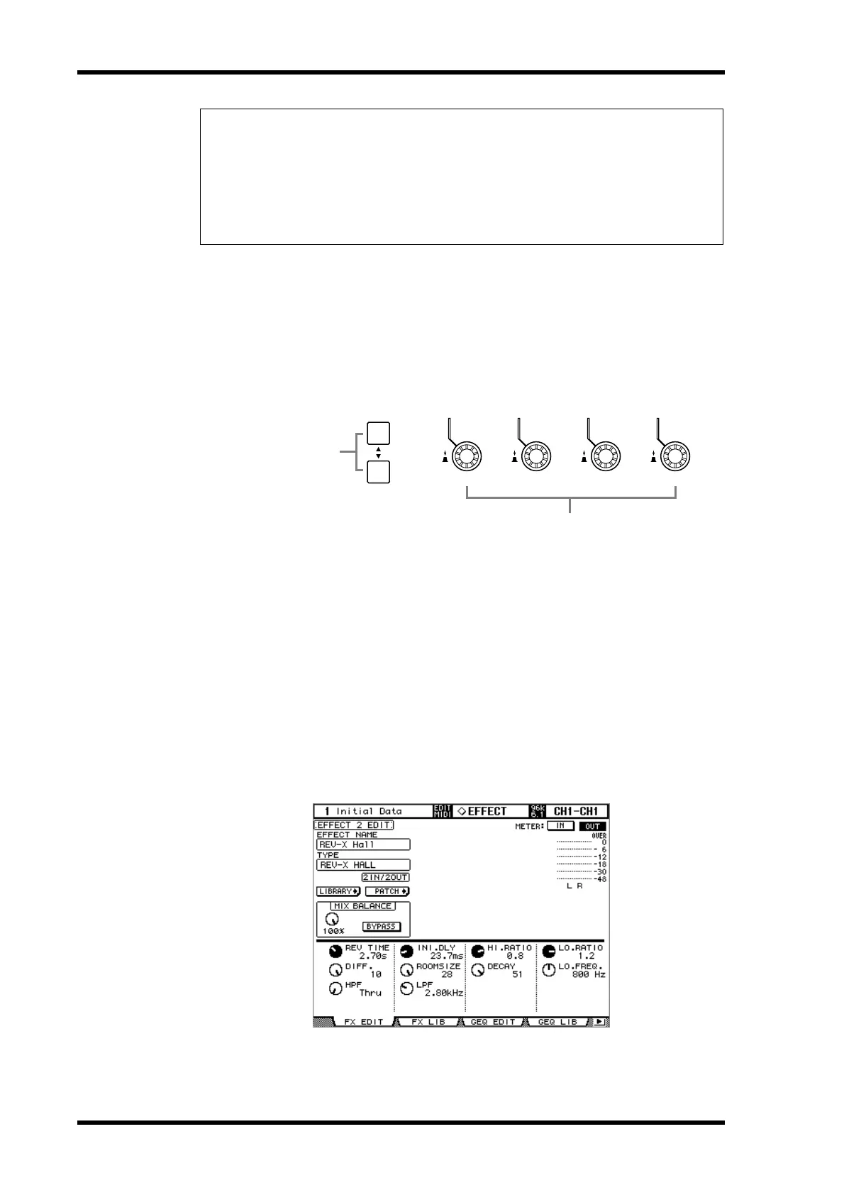 respectively. There are eight output meters for Effects processors 1 and 2, and two output