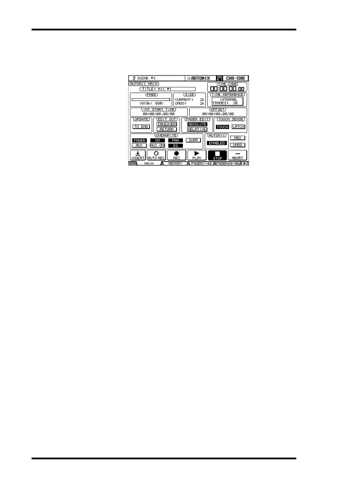 1 Use the AUTOMIX [DISPLAY] button to locate the Automix Main page.