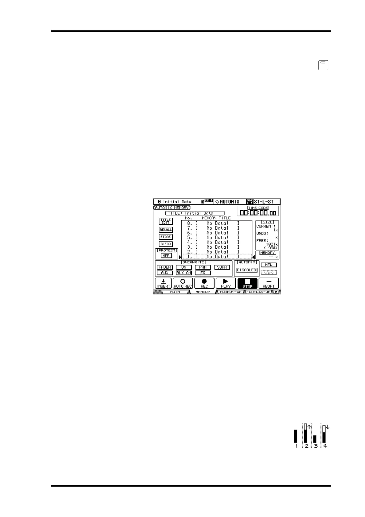 1 Use the AUTOMIX [DISPLAY] button to locate the Automix Memory page.