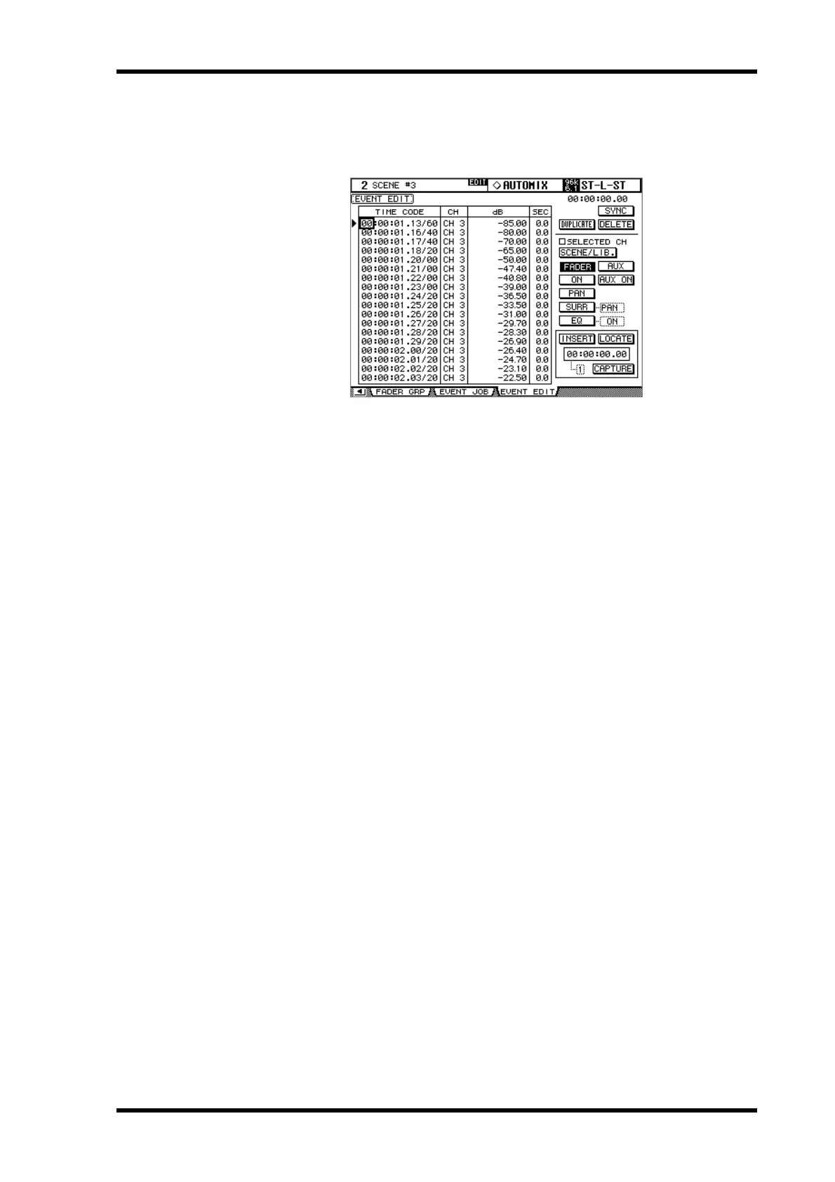 1 Use the AUTOMIX [DISPLAY] button to locate the Event Edit page.