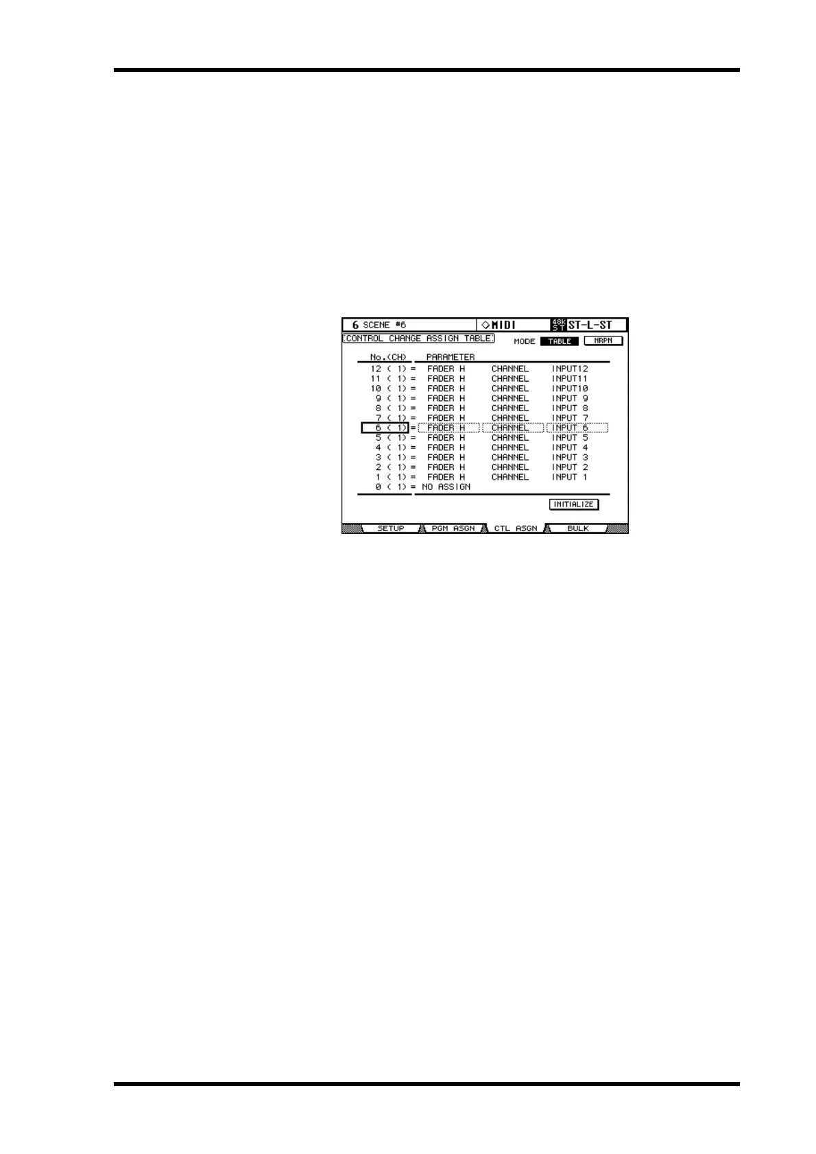 You can initialize the Parameter to Control Change assignment table by selecting the INI-