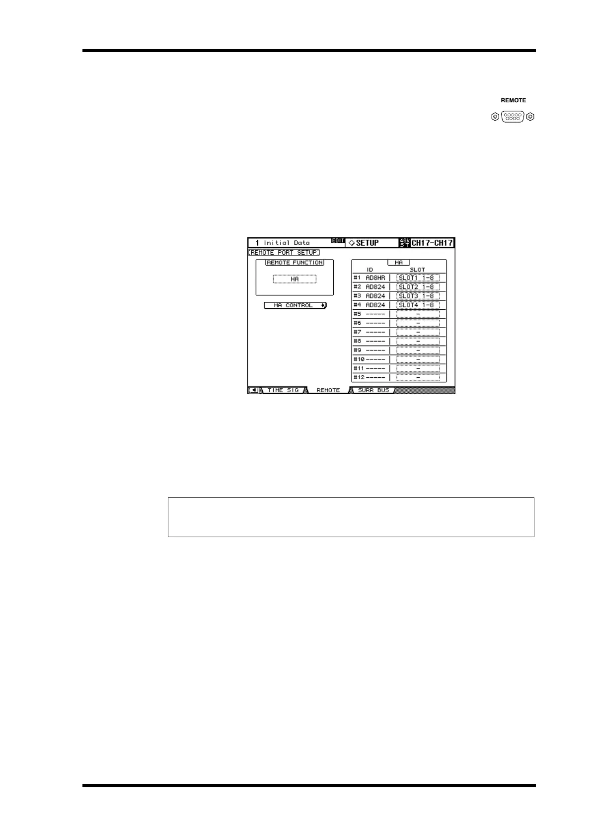 The REMOTE port can be configured, and Slots assigned to HA IDs as follows.