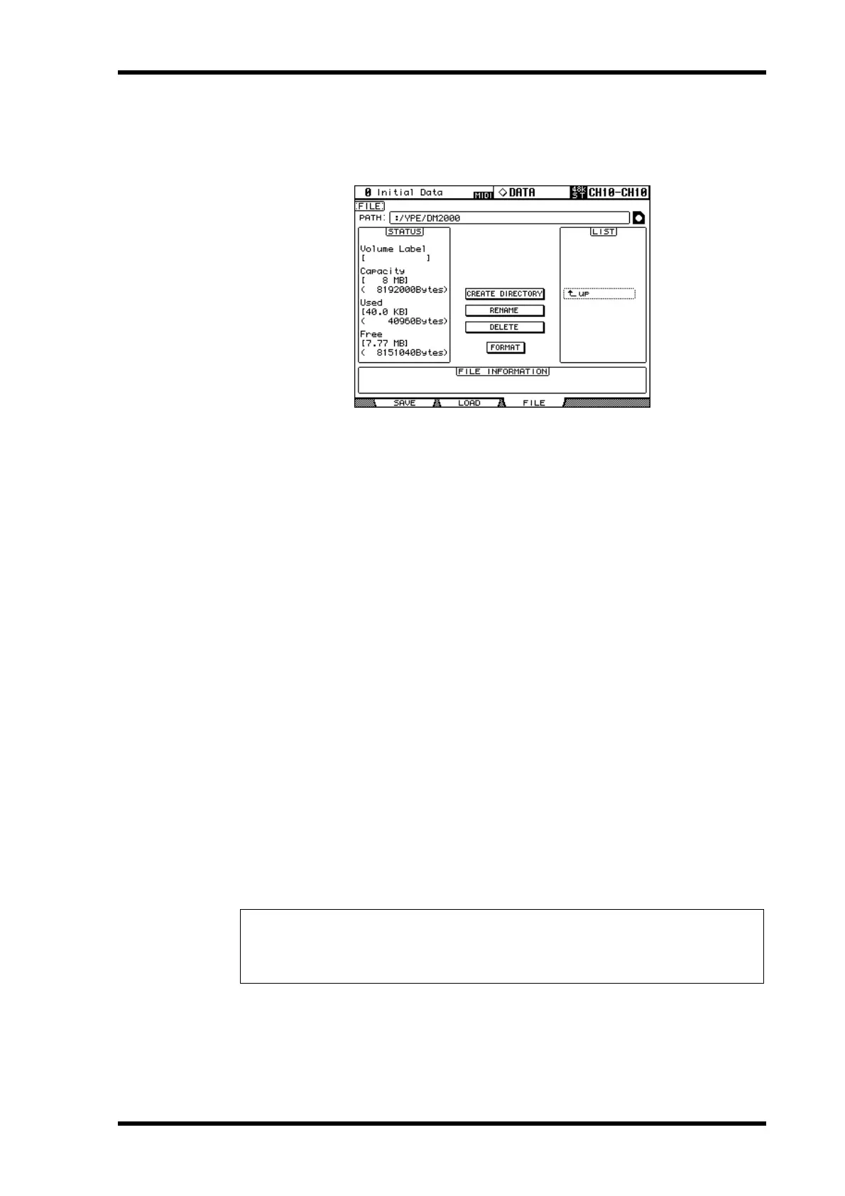 1 Use the DISPLAY ACCESS [DATA] button to locate the File page.