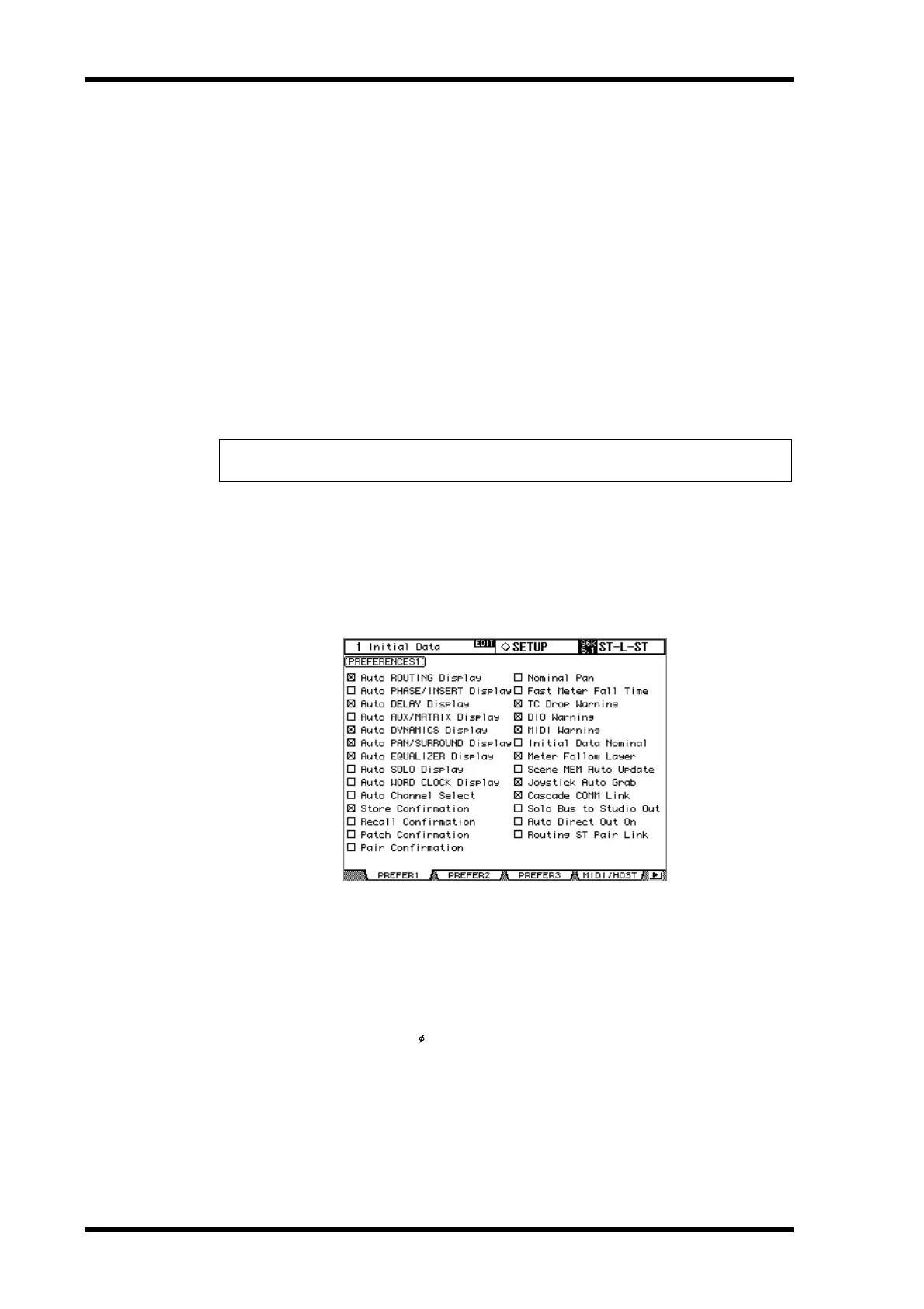 1 Use the DISPLAY ACCESS [SETUP] button to locate the Preferences 1 page.