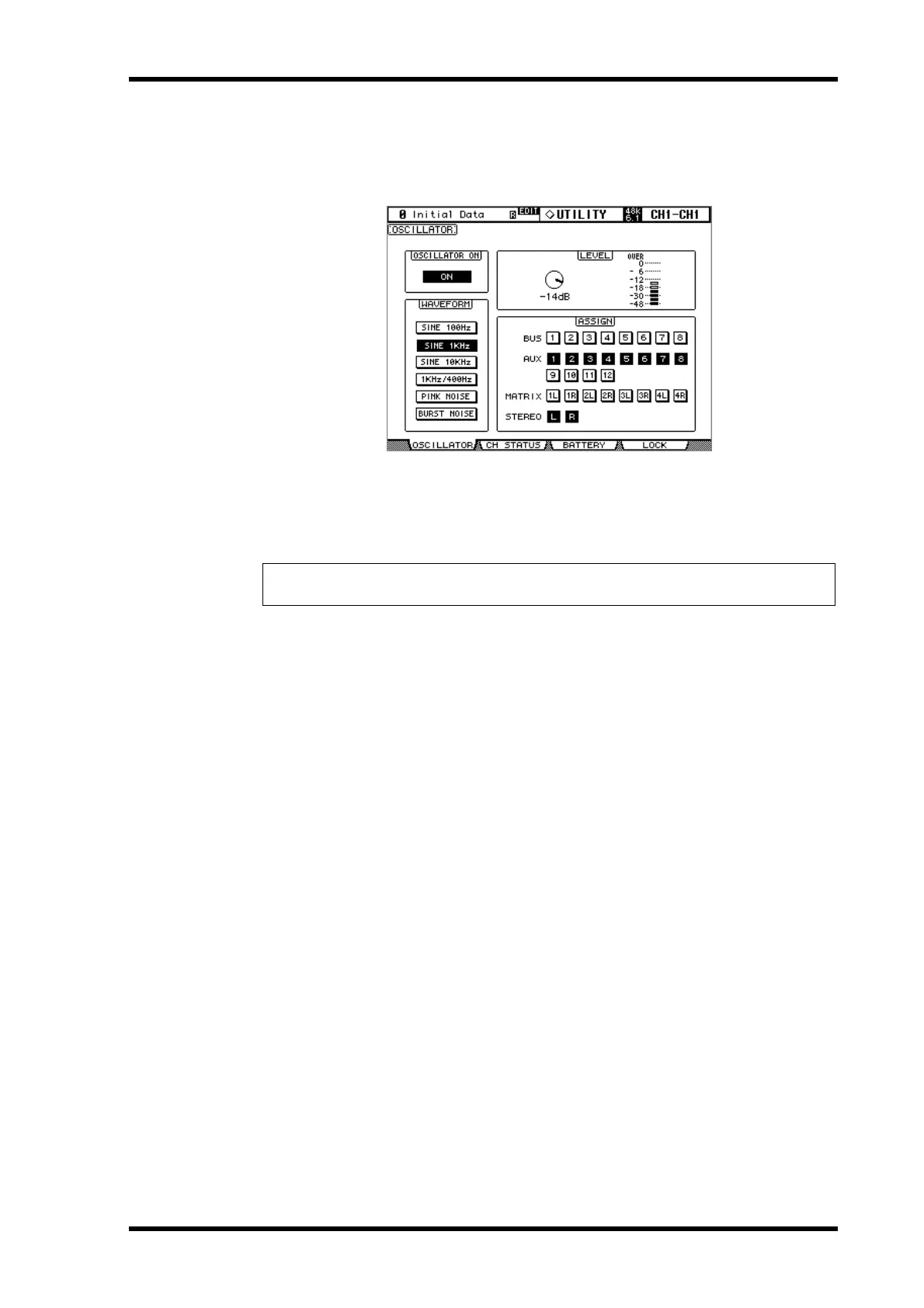 1 Use the DISPLAY ACCESS [UTILITY] button to locate the Oscillator page.