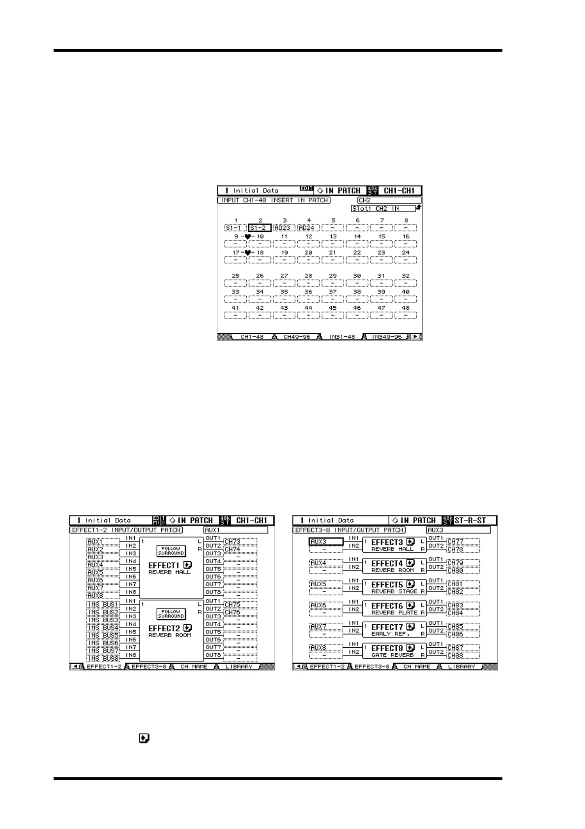 The Input Channel Insert In Patch parameters for the 96 Input Channels are divided