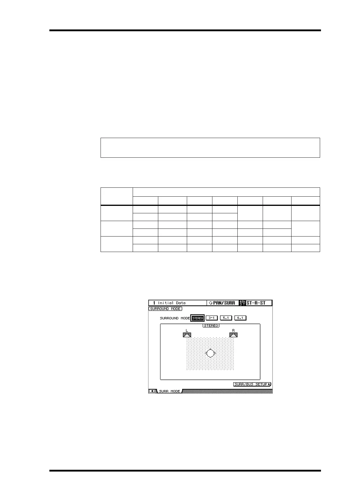 The table may vary depending on the settings on the Surround Bus Setup page (see