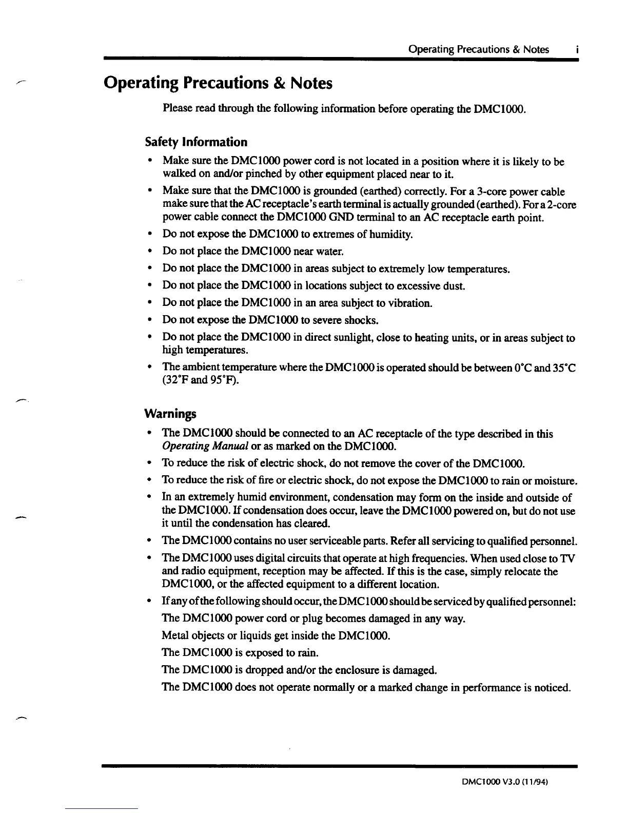 Yamaha DMC1000 - Operating Precautions and Safety; Safety Information; Warnings