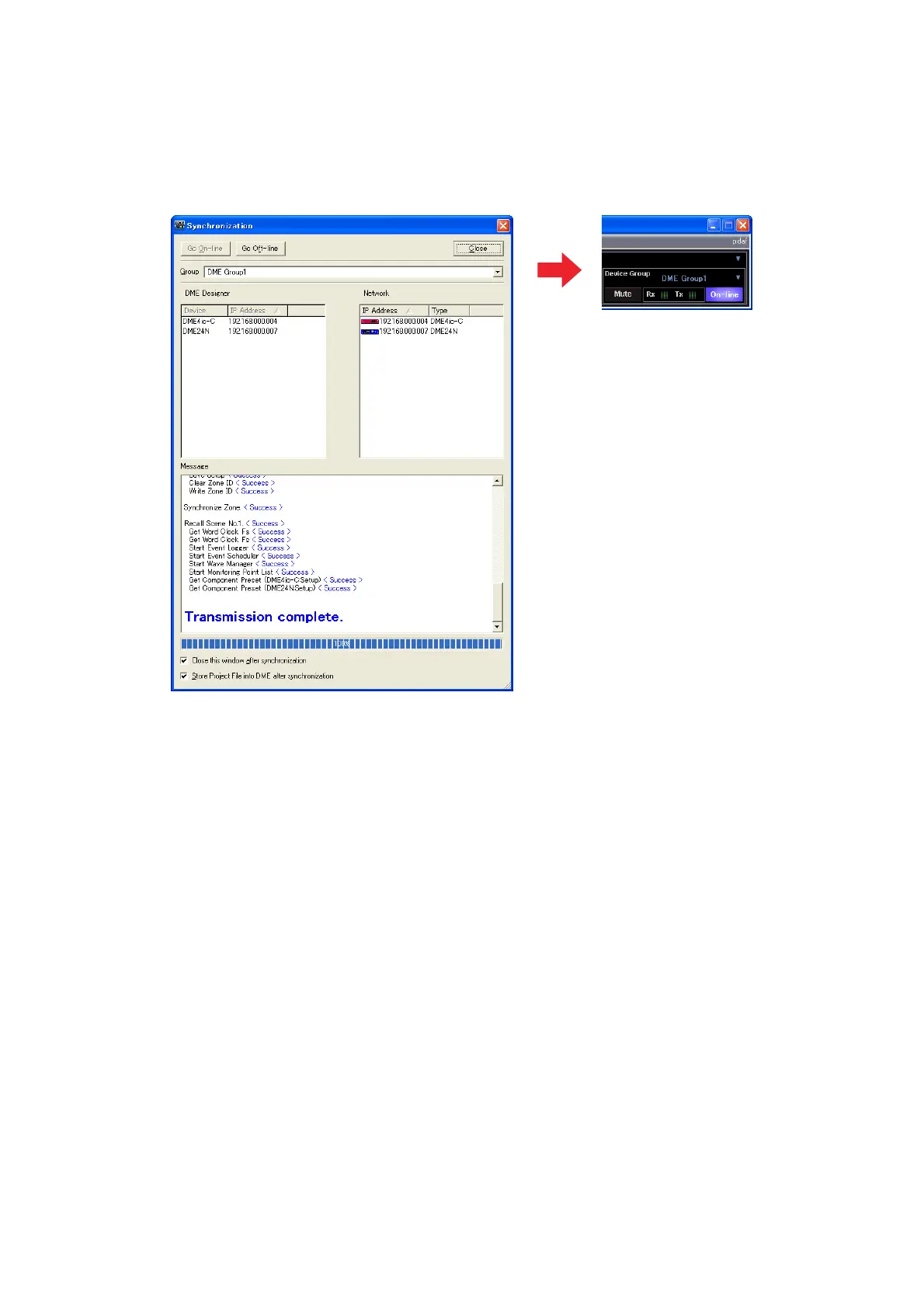 synchronization. The transfer time is faster than using the [DME Designer -> Device] button. However, if the configuration has