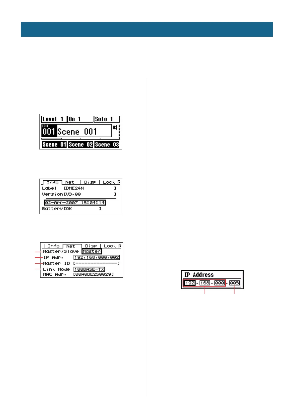 DME64N and DME24N device group and IP address settings can be made directly via the device’s panel.
