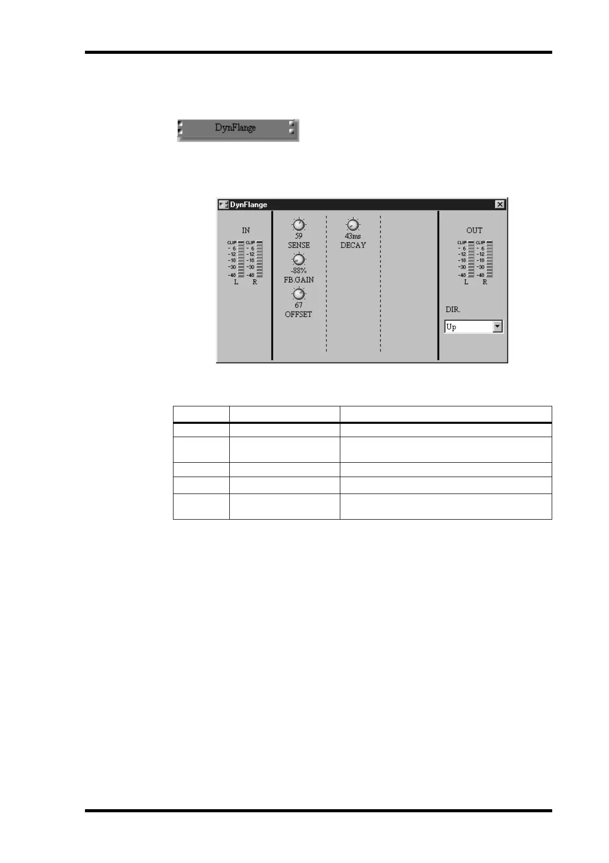The Dyna Flange control window consists of flanger controls, input level meters, out-