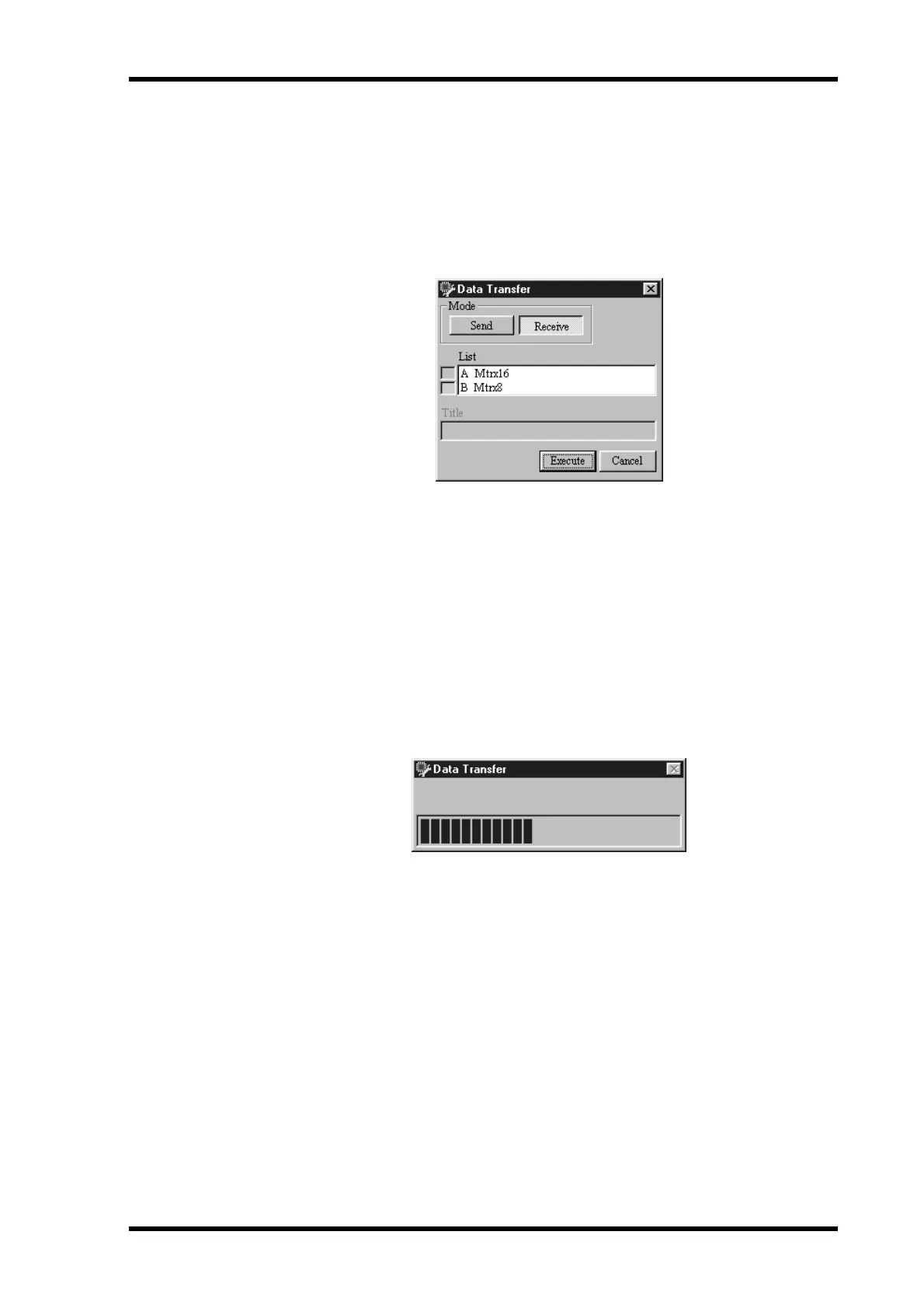 The List shows the titles of the configurations stored in the DME32. The title of the cur-