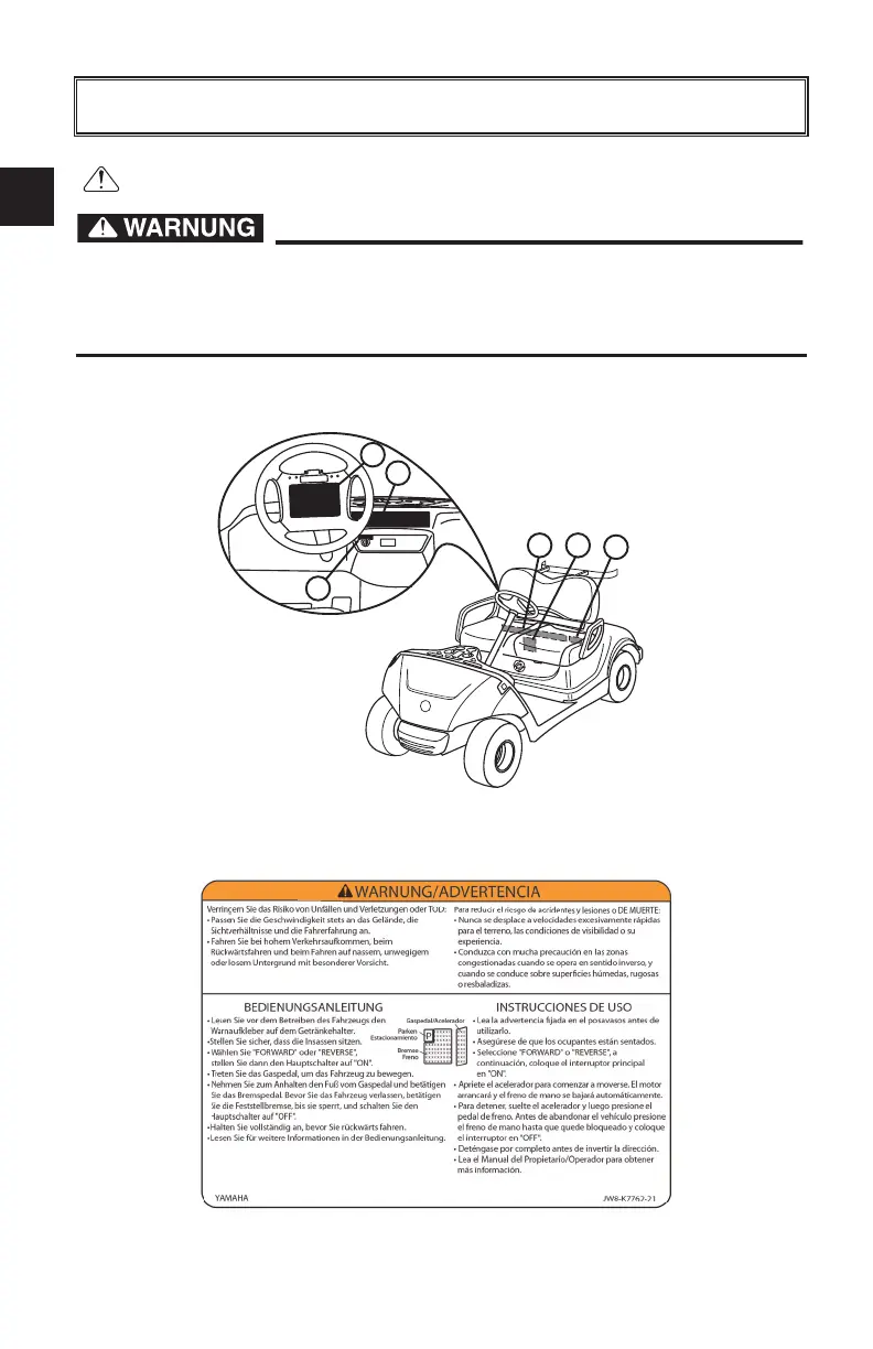 Lesen Sie vor dem Betrieb Ihres Golfwagens die folgenden Schilder aufmerksam