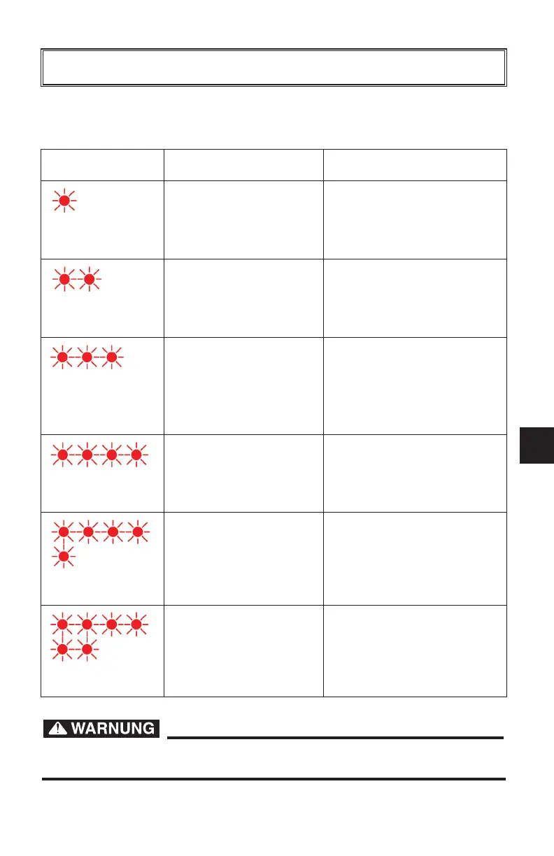 Bei Auftreten einer Störung zählen, wie oft die rote LED zwischen Pausen blinkt und