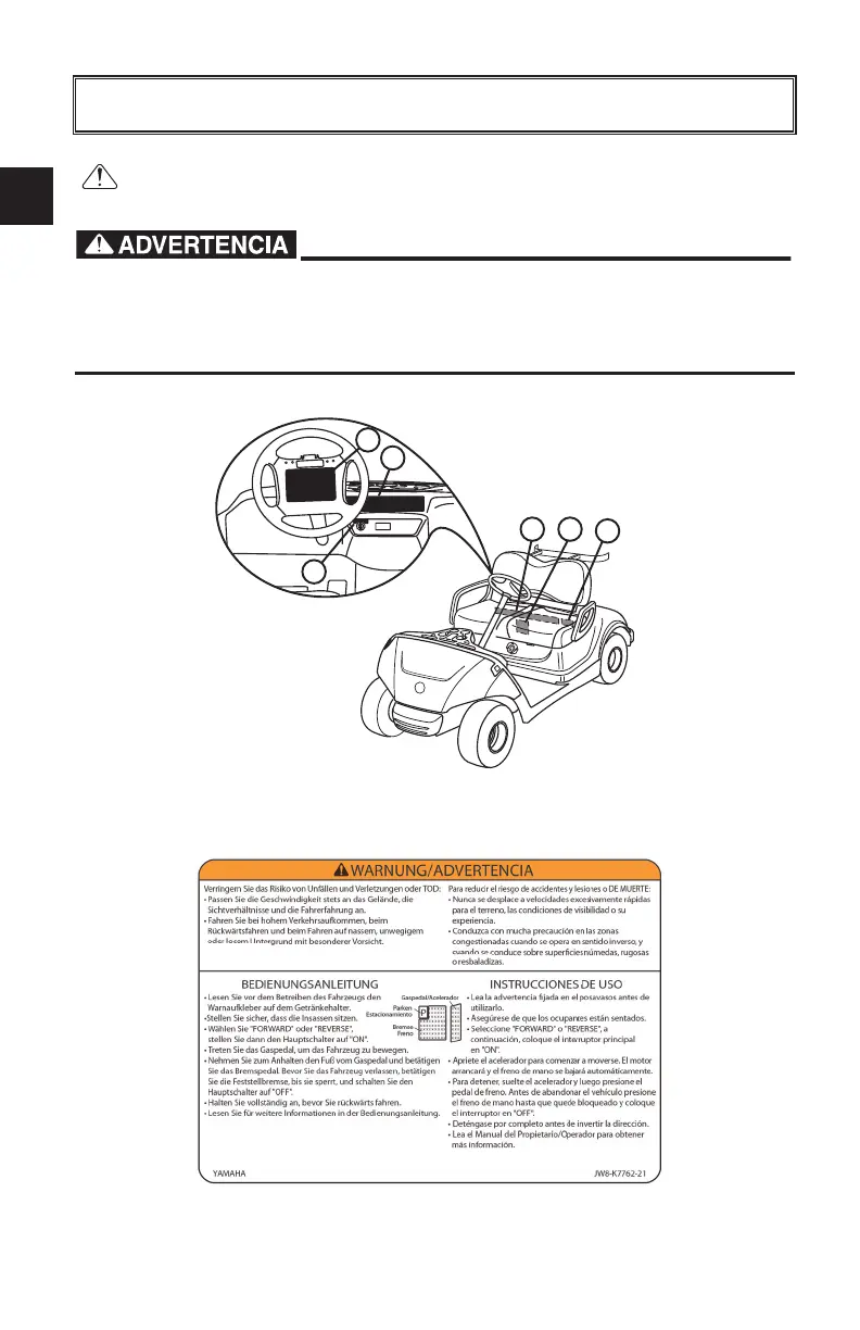 Lea atentamente las siguientes etiquetas antes de operar el carro de golf y reem-